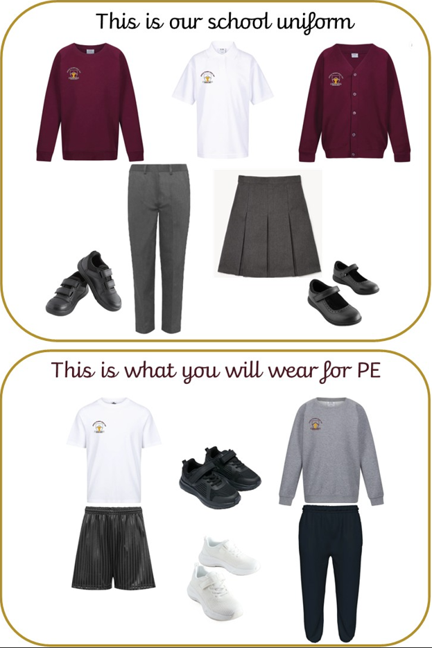 Our children are expected to wear the correct school uniform. The school logo should be seen on the sweatshirts and cardigans.