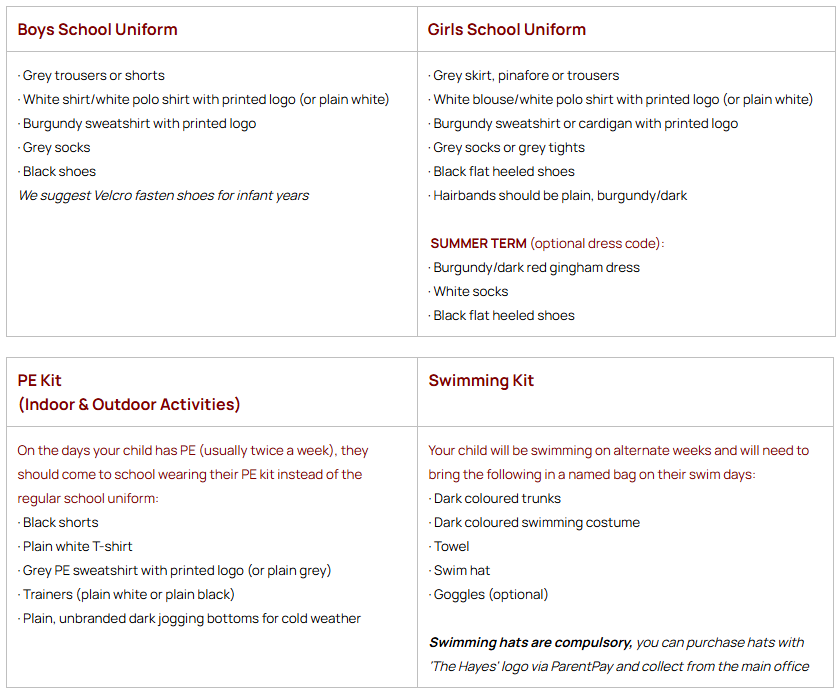 - Branded school uniform is available to purchase online from Earth Uniform (further details below)